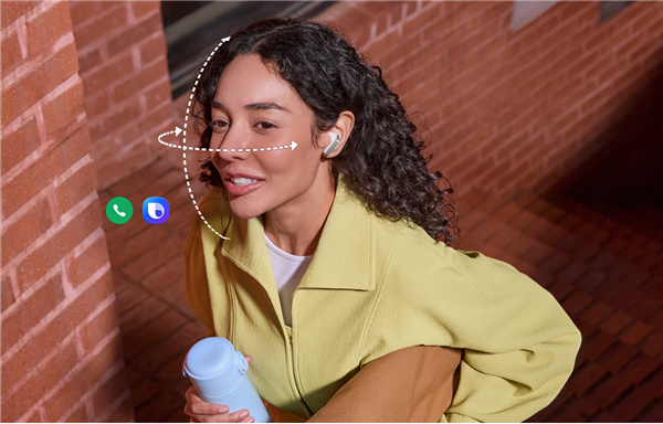 此外,用户佩戴耳机的情况下,可以仅通过直观的点头或摇头动作完成快速回应,无论是接听来电还是与Bixby对话,全程轻松无需动手。