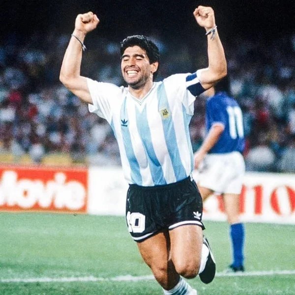1986 年墨西哥世界盃,是馬拉多納封神的舞臺,是足壇史上最耀眼的個人表演。1/4 決賽對陣英格蘭,他先是用一記充滿爭議的“上帝之手”把球打進球門,讓全世界都看傻了眼;緊接着又上演連過五人的“世紀進球”,一路帶球撕破對方整條防線,把足球的魅力和個人能力展現得淋漓盡致。