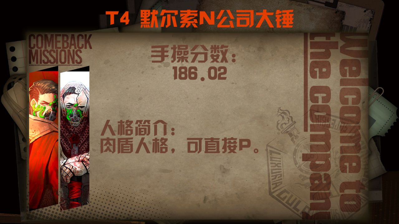 總結來說,雷橫默是一個很矛盾也可以說是限制很多的人格,基礎面板很普通,主要強度就在被動2上,打短線用1技能攢怠惰資源浪費子彈,只能靠隊友提供,長線又會沒子彈打不了,部分環境限制雙槽一下就沒子彈,如果想發揮出全部實力,就需要不錯的牌序加上手操、隊友提供怠惰資源和燒傷震顫層數、有能抗住4技能的3只怪、長線12個技能左右結束、短線開守備5個技能左右結束,但事實上是有如此豐富的條件還有很多人格實力也會有大幅度提升,如排名靠後的火浮、目燈蟲、憎惡唐、雞夫、五唐等,所以雷橫默不僅數值不夠高僅夠T0.5,機制限制還大,並不能作爲T0甚至T0.5也僅爲環境較爲適配時才能達到。