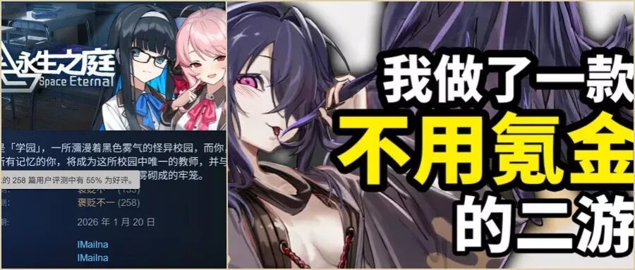 如今的《永生之庭》,可以说是话题远大于销量。Steam平台的评测数显示游戏销量低迷,属于小众作品;但它吃遍的二游节奏,却比很多热门大作还要多,骂声与销量形成了鲜明的反比。今井本人,也从一开始的被玩家追捧,变成了千夫所指,处境十分尴尬。