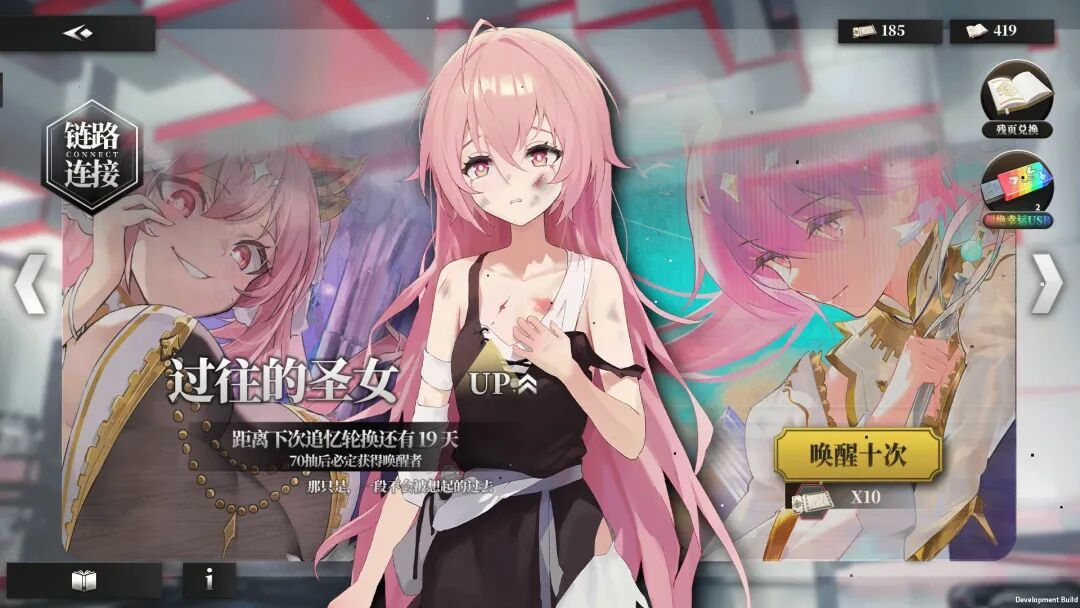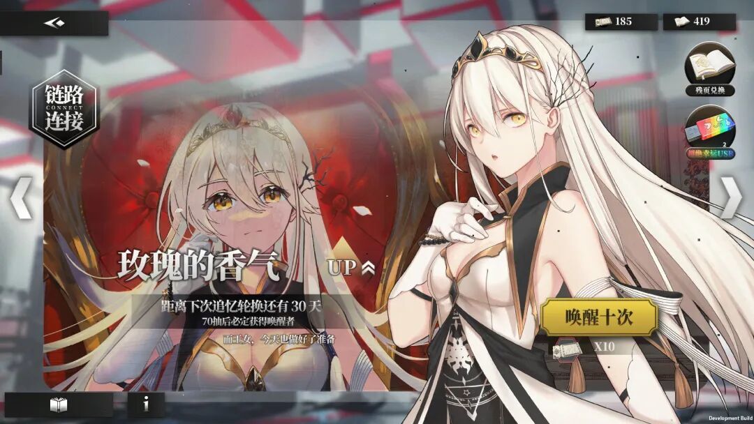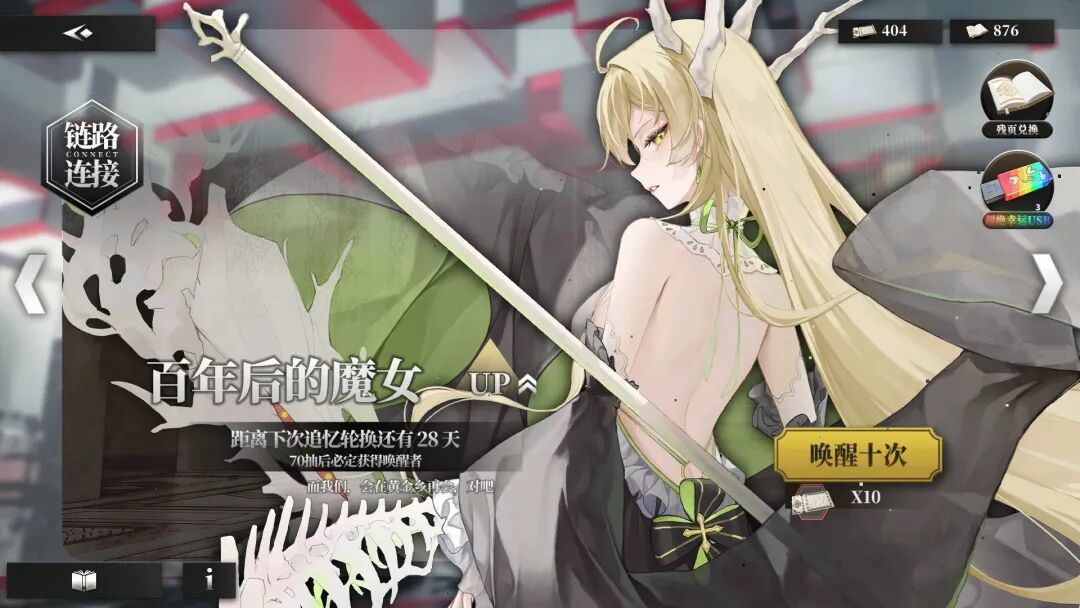 抽卡系统当然是最先抓眼球的部分。你打开游戏,映入眼帘的是熟悉的“唤醒”(抽卡)界面,点进去就是熟悉的十连界面,单抽、十连、保底、兑换所,一应俱全,连“月卡”和“648”都有,只不过全是游戏内资源兑换,不需要花真钱。