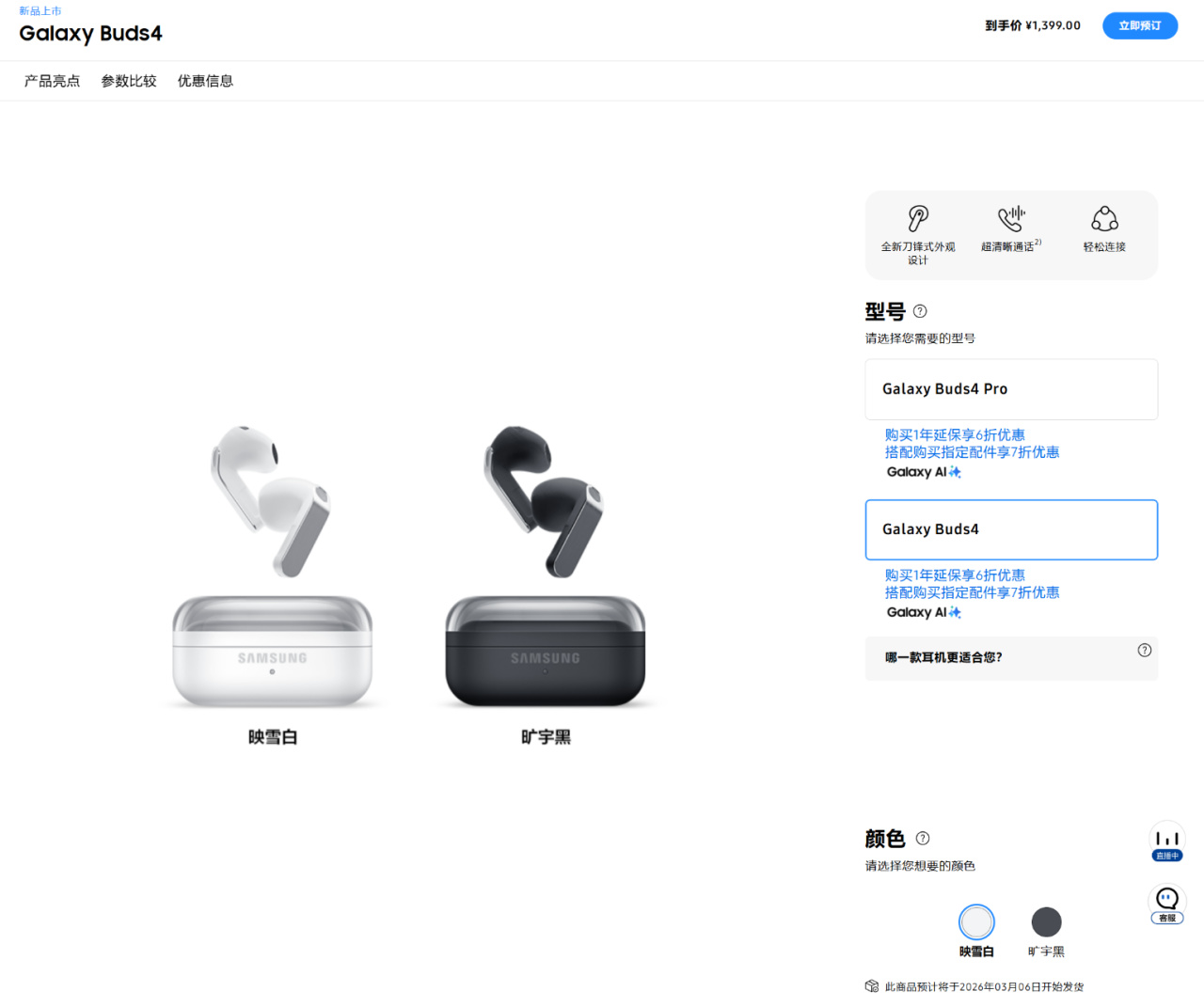 近日,三星Galaxy Buds4系列正式发布,三星Galaxy Buds4 和 Galaxy Buds4 Pro 售价分别为 1399 元和 1899 元。