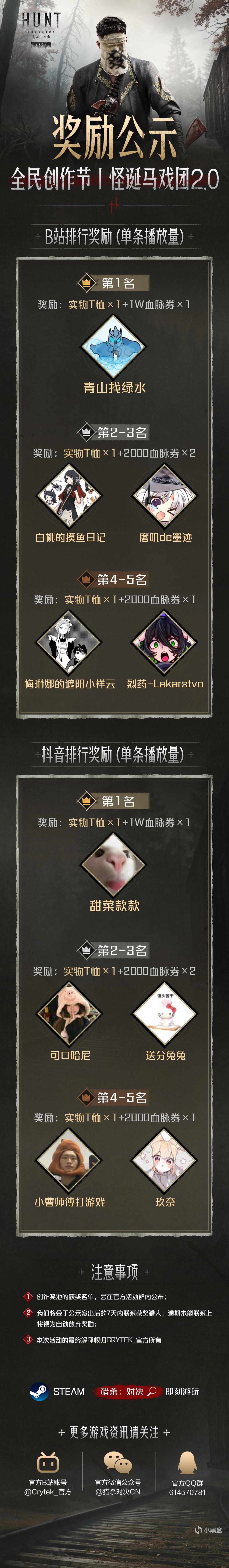 感謝各位獵人的踊躍參與和精彩創意,本期獲獎名單正式公佈如下 (創作獎池獲獎名單將在官方活動羣內同步公示)