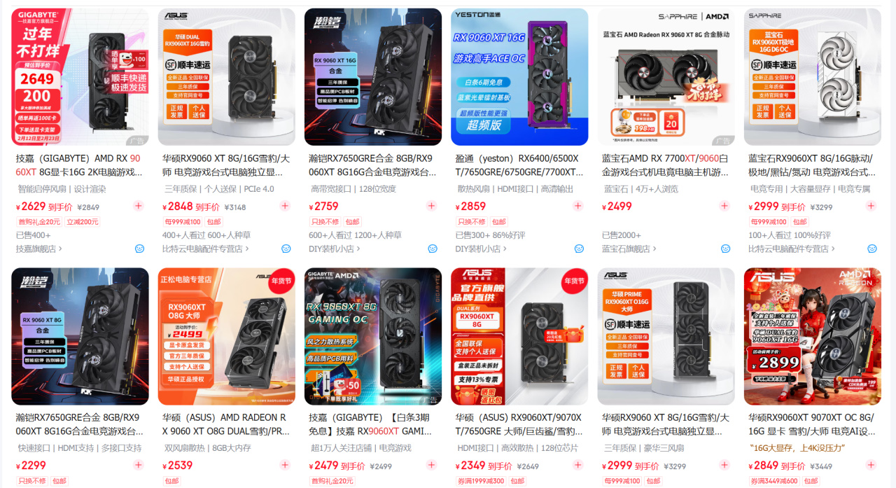 大多数人还是会选择2000到4000元价位的显卡,比如5060、9060、7700XT,或者性价比突出的9060XT(目前2600元左右,光栅性能相当强)