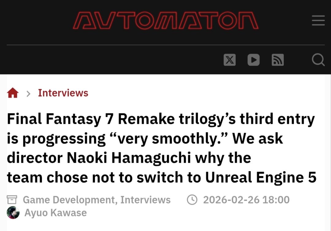 AUTOMATON 採訪了系列總監濱口直樹,詢問了最終幻想7重製版登陸 Switch 2 與 Xbox 後的表現,以及備受期待的三部曲第三部作品的相關情報。