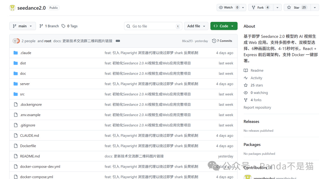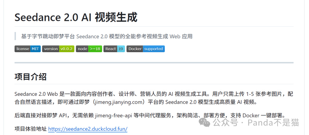 即梦的Seedance 2.0不知道大家体验了没,因为模型的火热,自然也就有对应的项目出来了,今天要介绍的属于纯前端项目,后端直接对接的即梦的API,模型方面目前支持Seedance 2.0以及Seedance 2.0 Fast。