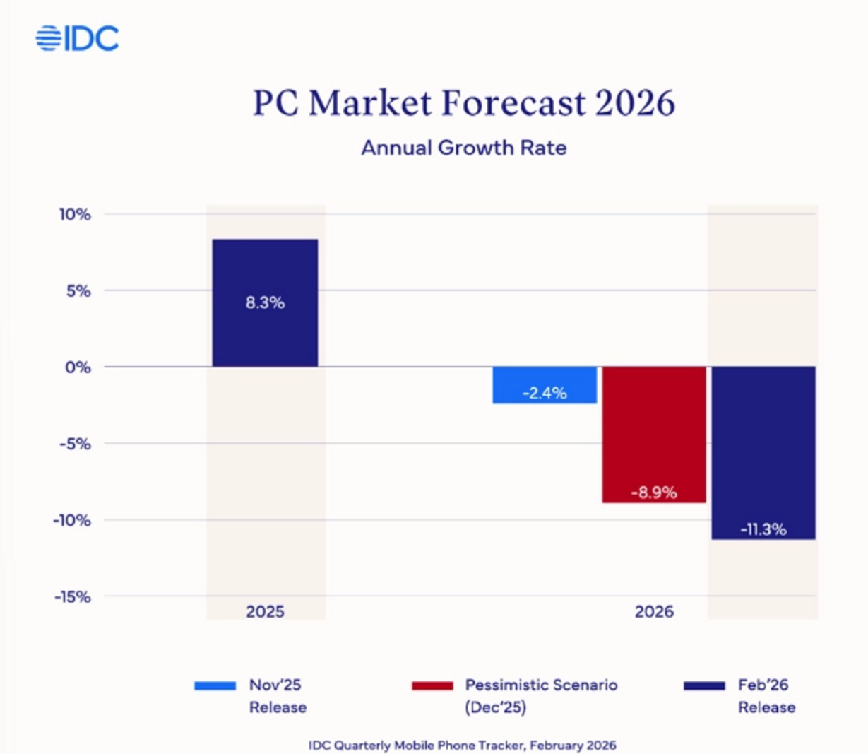 全球智能手机市场正遭遇存储芯片短缺引发「{生存危机」。据IDC最新预测,2026年全球手机出货量将同比暴跌12.9%,从2025年的12.6亿部骤降至约11亿部,相当于抹平了过去数年的增长成果。