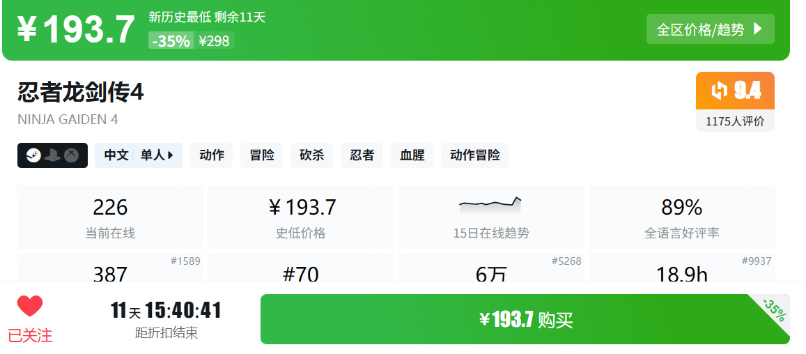1.《忍者龙剑传4》
