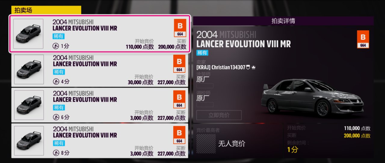 奖励车辆为:2004款MTSUBISH LANCER EVOLUTION VIII MR