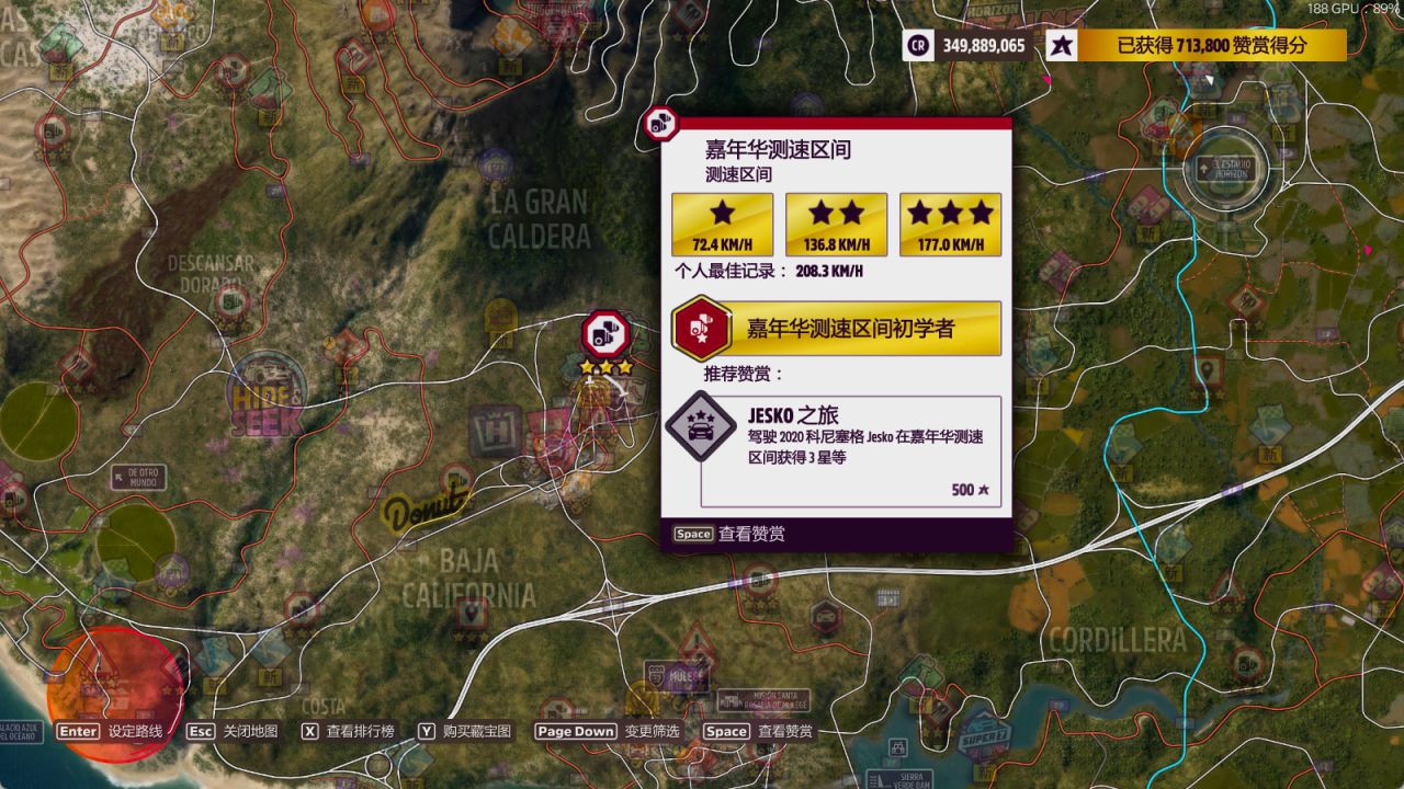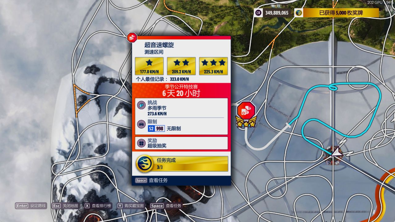测速照相:山腰,完成奖励为超级抽奖(完成条件:289.7km/h)