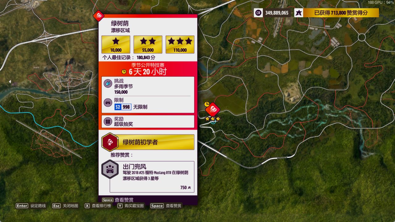 漂移区域:绿树荫,完成奖励为超级抽奖(完成条件:15w分)