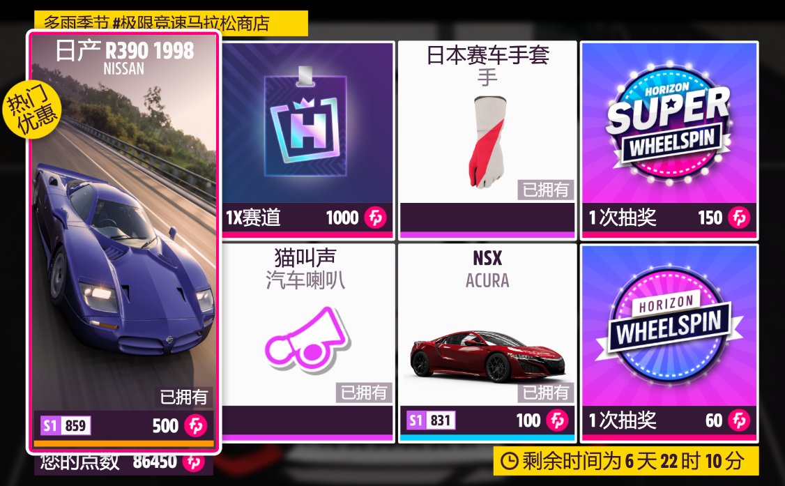 地平线后台通行证,目前后台车辆较少,五代和四代一样采取投票返场车辆的方式,通行证换不换大家自行抉择;猫叫声汽车喇叭、日本赛车手套没有的建议大家兑换。每周更新的衣服和喇叭等没有的建议大家无脑兑换!