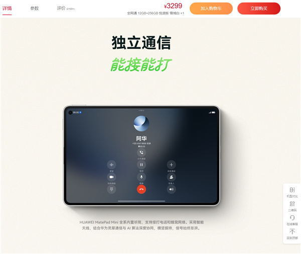 相比之下,国行版MatePad Mini全系支持蜂窝网络,支持插卡通话,秒变8.8英寸“大号手机”。