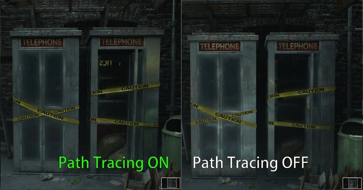 从整体来看,开启路径追踪的《生化危机:安魂曲》几乎变成了另一个游戏。这是因为路径追踪本质上是一种模拟光线在三维场景中传播方式的全局光照渲染技术。相比起光线追踪,路径追踪采用了大量随机路径模拟全局光照的传播,而非选择特定光想,从而获得包括软阴影、漫反射、焦散等全场景下光照效果,这是实现部分场景特效的光线追踪无法做到的。