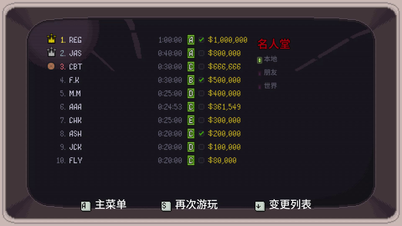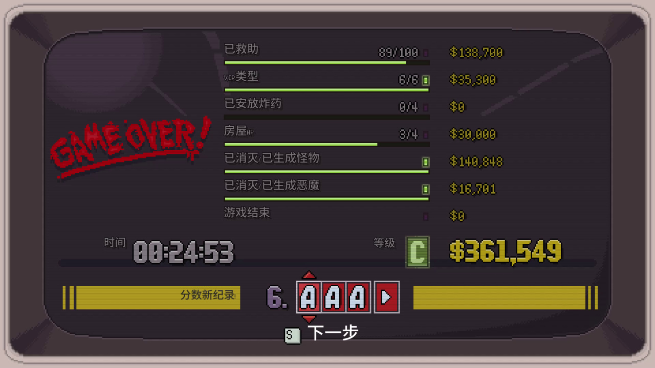 整体难度不小,焦头烂额的,目标就是在救够100人情况下,保证至少四个屋子以及自身安全,最后排行榜比分。只能改部分键位,除了那种大武器,像高尔夫球杆、棒球棍这种都很垃圾多余。