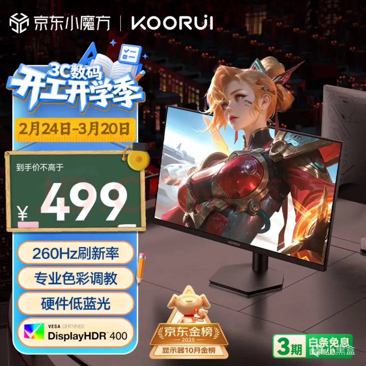 推荐理由:压轴小屏电竞钢炮!2K+275Hz王炸组合,小桌面也能享旗舰电竞体验,开学季电竞学习一把抓,我这边活动显示1099,图片上的1299可以忽略
