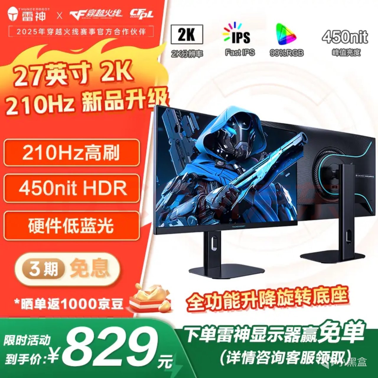 推荐理由:千元内2K高刷全能款,出厂校色色彩精准,升降旋转支架适配宿舍多场景,暗部增强+准星辅助,游戏学习双适配