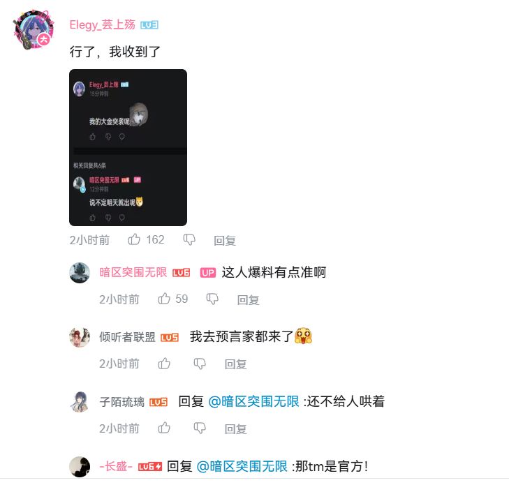 今天的大金突袭模式官方也是在B站评论区方式泄密的,所以抖音这边的评论可信度很高。