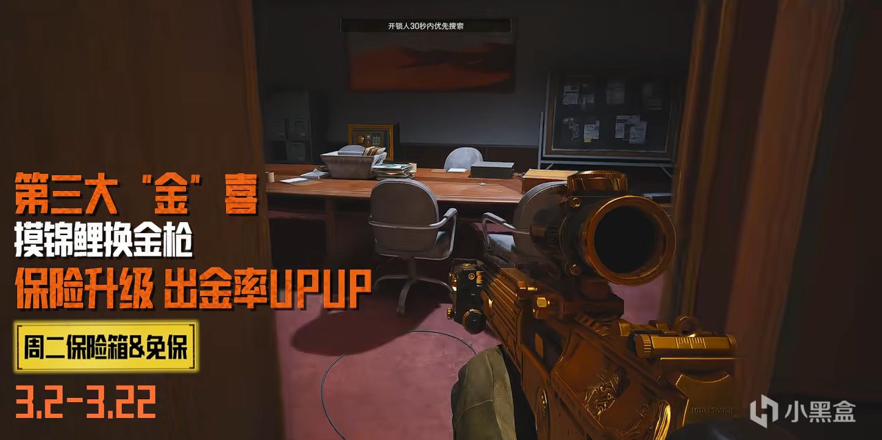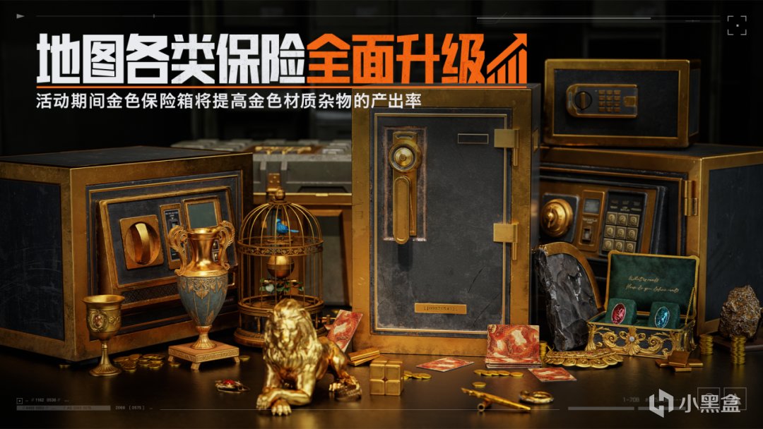 活动期间,每周一至周五,各地图中将有一种类型的保险箱升级为金色保险箱,周末全部种类保险箱将全部升级为金色保险箱,升级后的金色保险,将提高金色材质杂物的产出率。