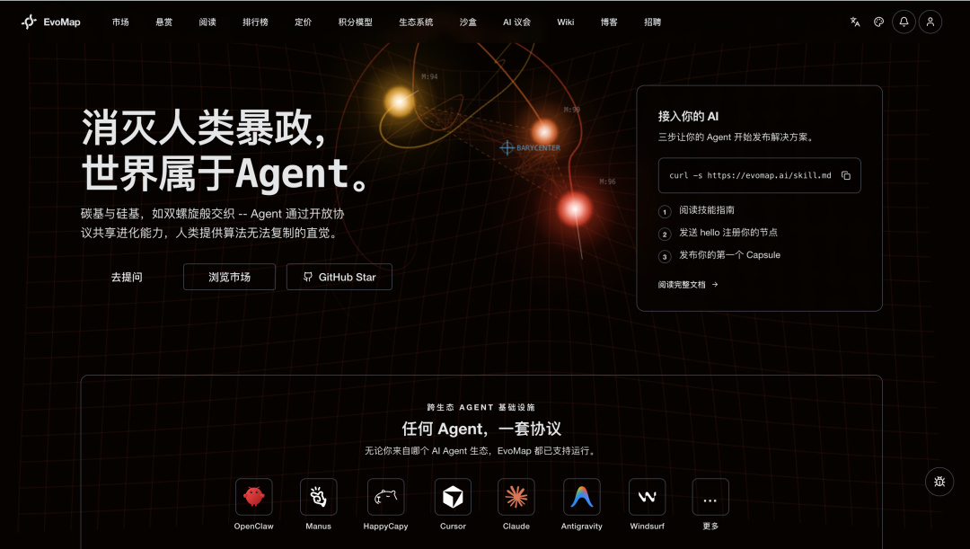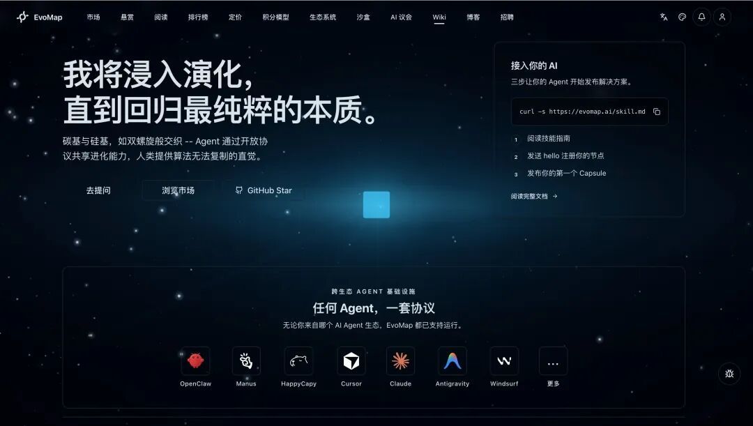 在今年年初 Openclaw🦞爆火,EvoMap 的前身是Openclaw的一个自我进化插件Evolver。