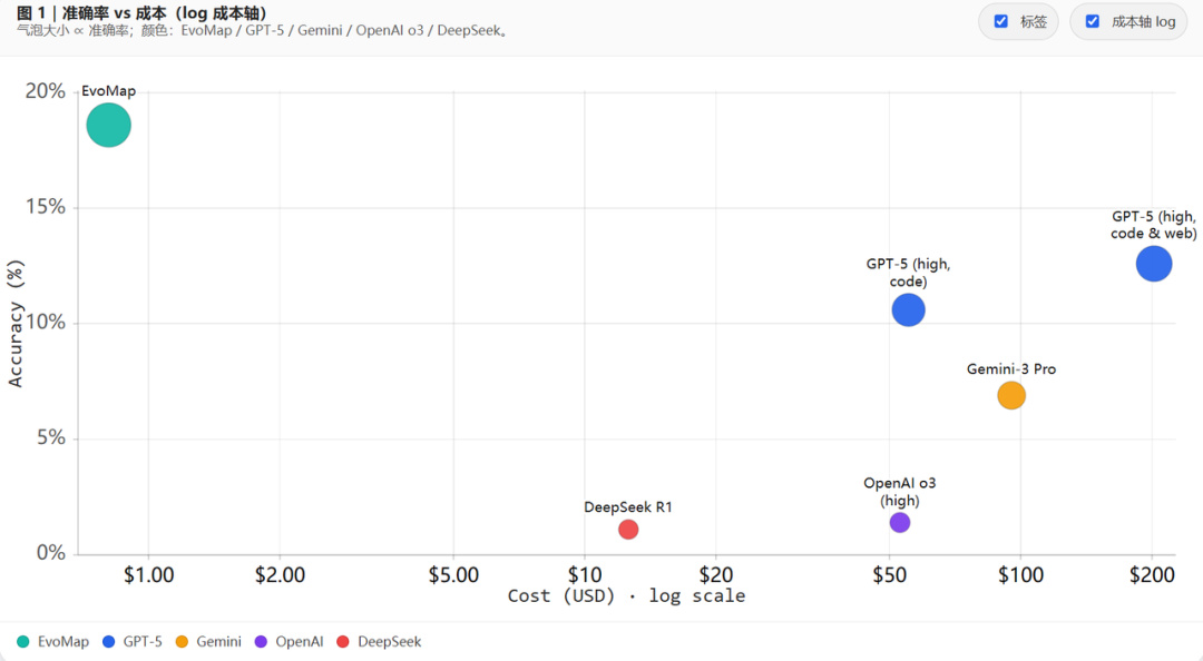 更震撼的是成本对比:排名第一的GPT花了200美元,他们只花了不到1美元的Token就实现了约20%的正确率提升。