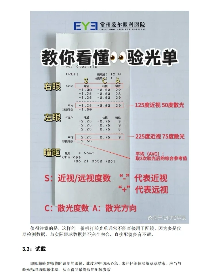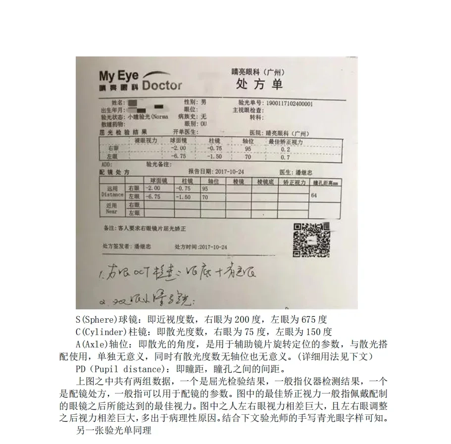 值得注意的是,这样的一份机打验光单通常不能直接用于配镜,因为多是仪器检测数据,与实际眼球数据并不完全吻合,直接配镜多有不适。