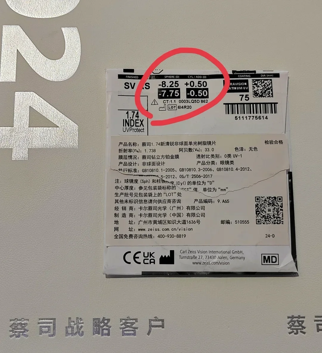 以网络上找到的蔡司镜片参数为例