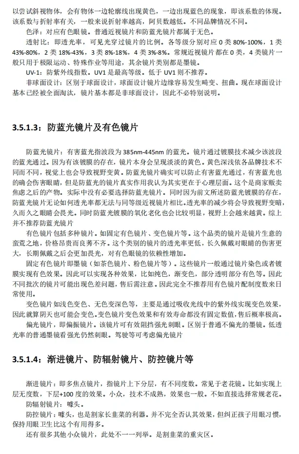 3.5.1.4:渐进镜片、防辐射镜片、防控镜片等