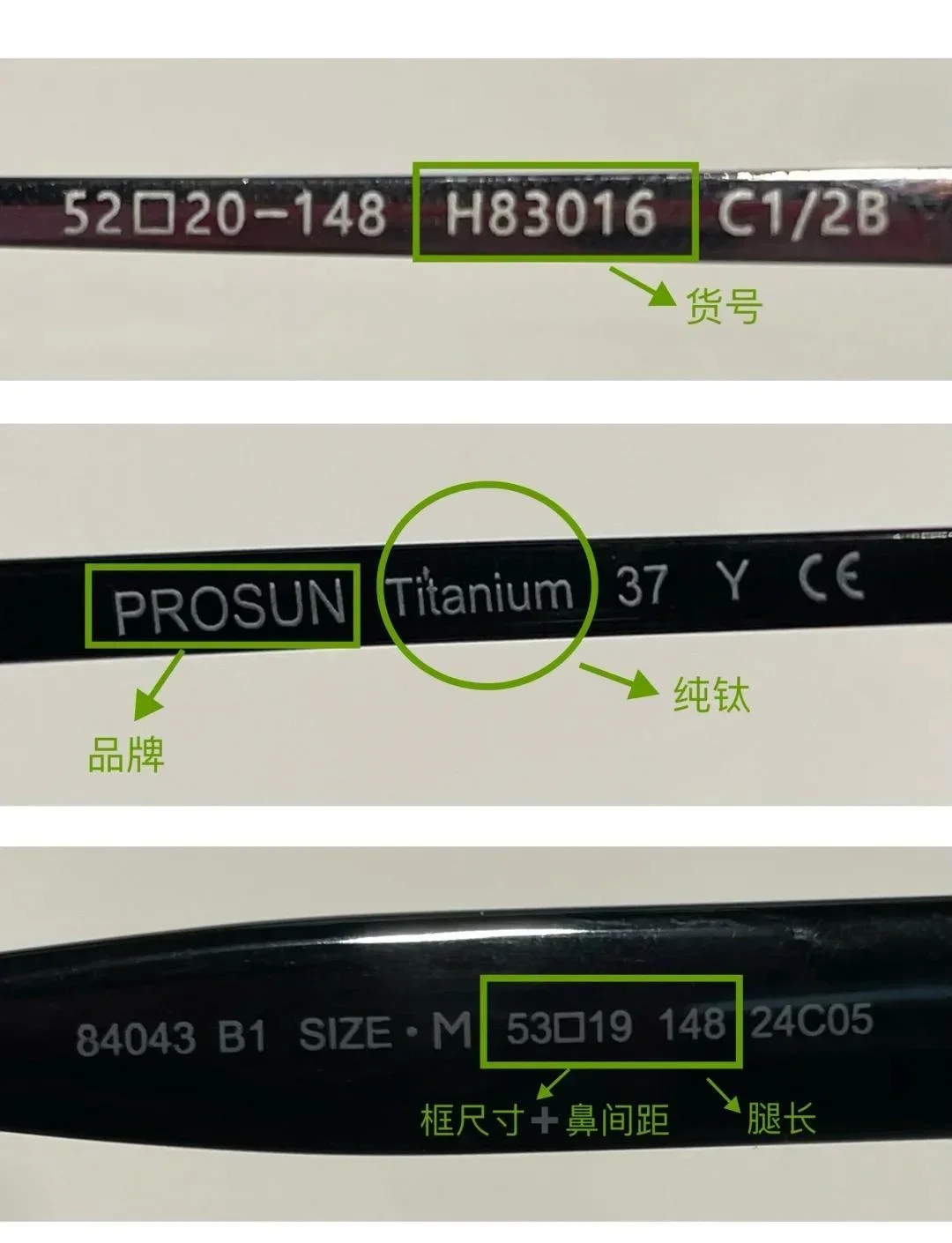 β钛:钛合金,软、弹、轻、不易生锈,中端主流。β钛镜框会有β钛字样标注(如β-Titanium),没有标注的多是合金框架。