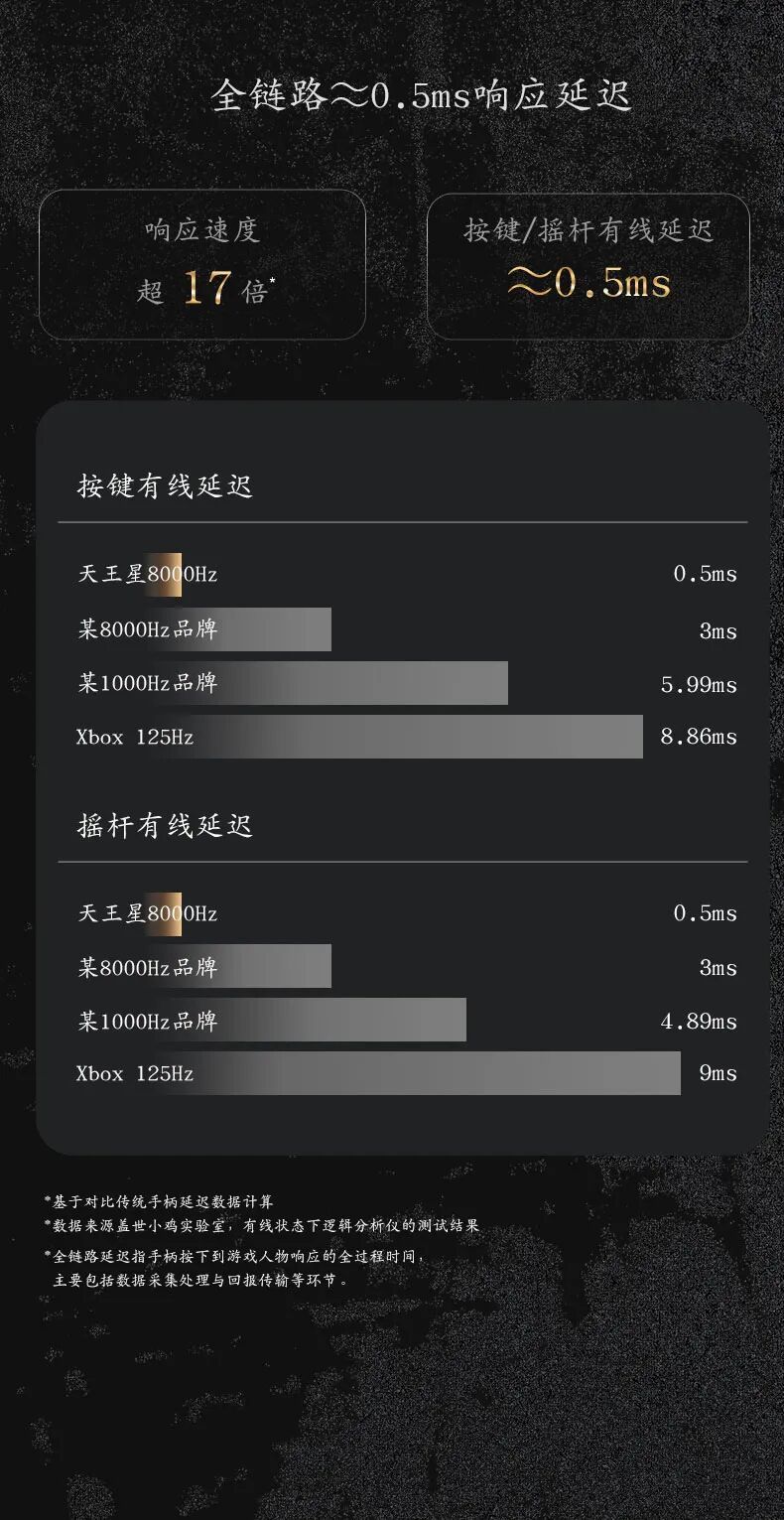 天王星8K《仁王3》联名款手柄全链路延迟约0.5ms,全球最低延迟,比传统手柄响应速度提升超17倍。