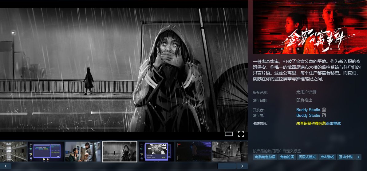 《金宵公寓事件》是一款真人實拍互動推理遊戲,玩家扮演臥底記者僞裝成夜班保安,在即將拆遷的金宵公寓中調查連環命案,通過監控系統“幀探”捕捉線索,結合網絡搜索與住戶對話揭開“青蛙人”兇手的真相。