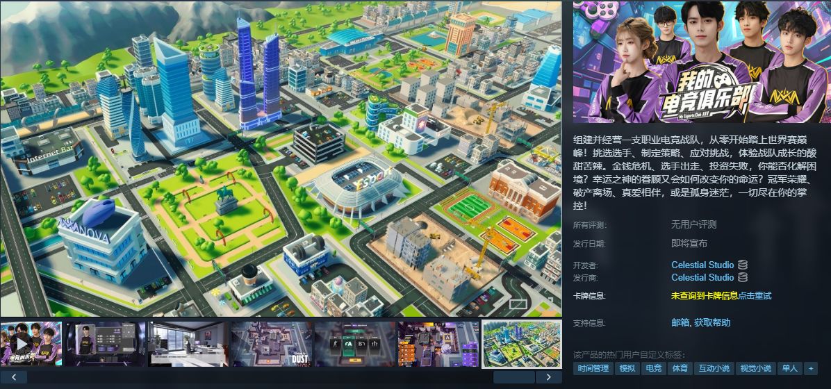 《我的電競俱樂部》是一款電競經營模擬遊戲,玩家將組建並管理一支職業戰隊,從招募選手、安排訓練到征戰賽事,體驗俱樂部運營的全流程。遊戲融合策略經營、選手養成與股市投資玩法,含多結局分支與開放式大地圖探索。