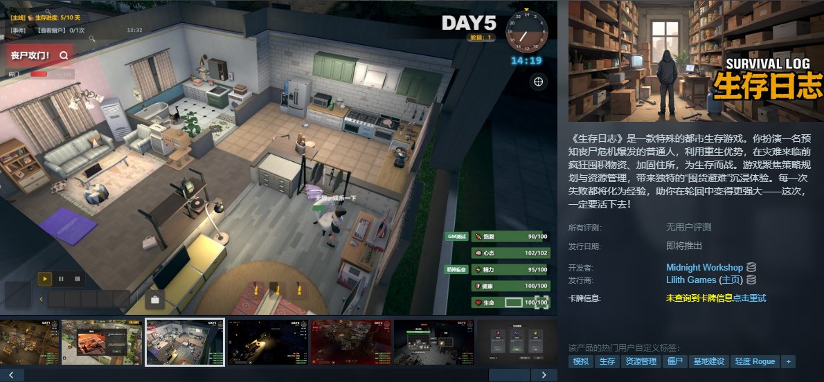 《生存日誌》是一款都市生存策略遊戲,玩家扮演預知喪屍危機的普通人,利用重生能力在24小時內囤積物資、加固避難所,通過輪迴機制積累經驗解鎖多結局。