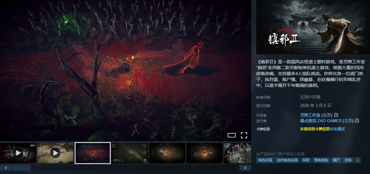 Steam特別好評遊戲《鎮邪》的續作,是靈煦工作室開發的國風道士題材動作RPG,支持1-4人聯機。玩家扮演道門弟子,在軍閥混戰、妖魔橫行的亂世中,運用符籙、煉屍、探墓等道術對抗邪祟,揭開千年陰謀。