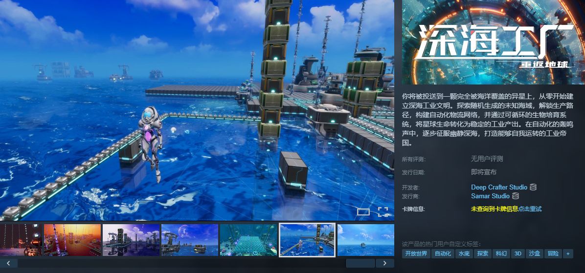 《深海工廠》是一款由Deep Crafter Studio開發的科幻沙盒建造遊戲,玩家將在一顆被海洋覆蓋的異星上建立自動化工業文明,探索隨機生成的海域,採集資源並構建複雜生產線,同時揭開星球隱藏的祕密。