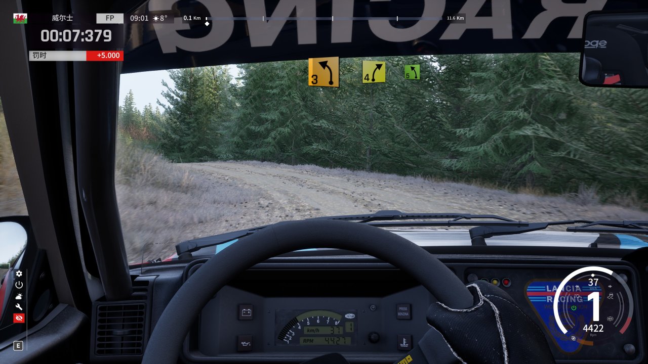 首先是固定第一视角驾驶,通过领航员路书播报来提醒玩家比赛线路,而第一视角肯定是方向盘的最佳体验——不会有人买了放心盘用第三视角开吧?