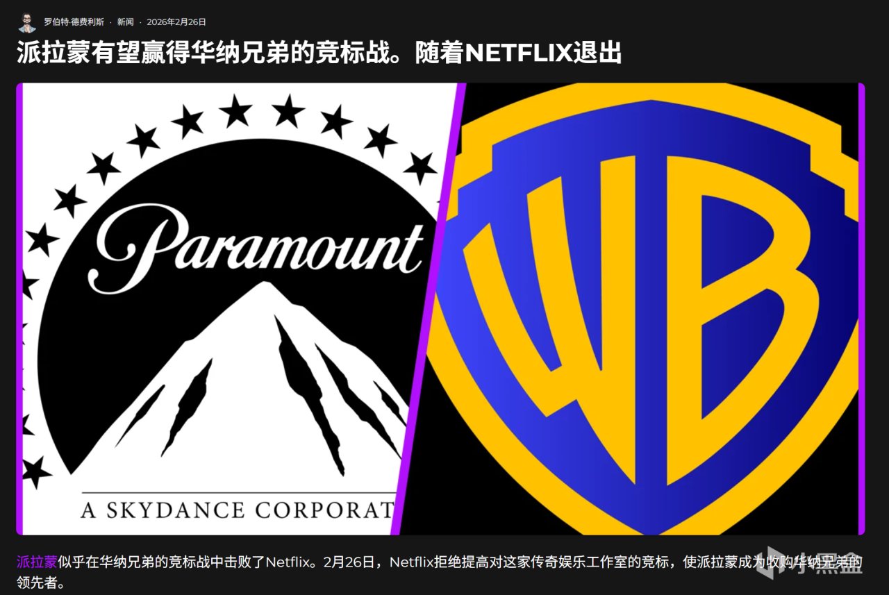 1. 派拉蒙有望贏得華納兄弟的競購戰,Netflix退出。來源:insider-gaming