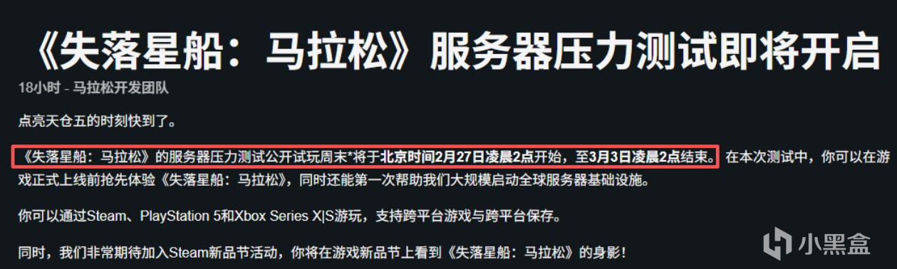 1. 《失落星船:馬拉松》今日凌晨2點正式開啓全球免費壓力測試,這場爲期7天的測試將持續至3月3日凌晨2點,而距離遊戲3月6日全球發售,僅剩短短一週時間。不同於以往部分遊戲的限定測試,本次《失落星船:馬拉松》的壓力測試採用零門檻模式,全體玩家均可免費參與,覆蓋Steam(PC)、PS5、Xbox Series X|S三大平臺。來源:Gamelook