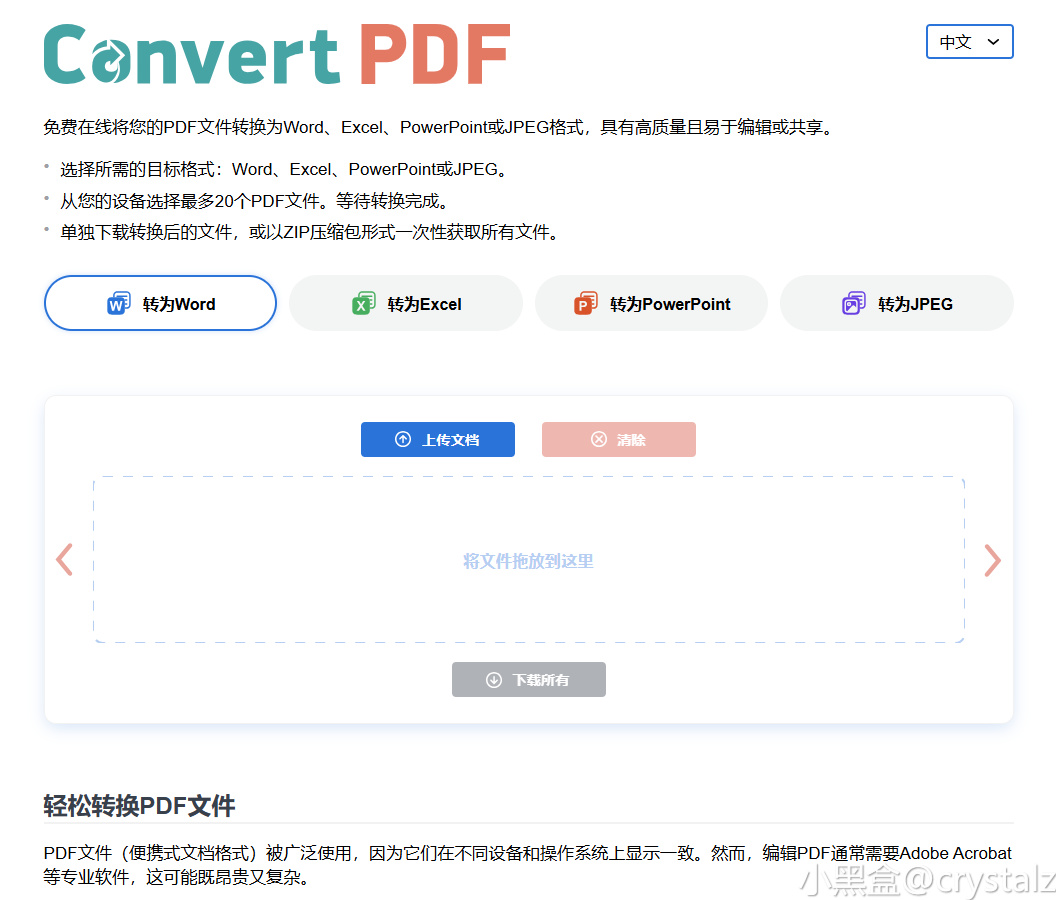 這個網站可以在線幫我們把 PDF 文件轉換爲可編輯的 Word、Excel、PPT 和 JPEG 格式。