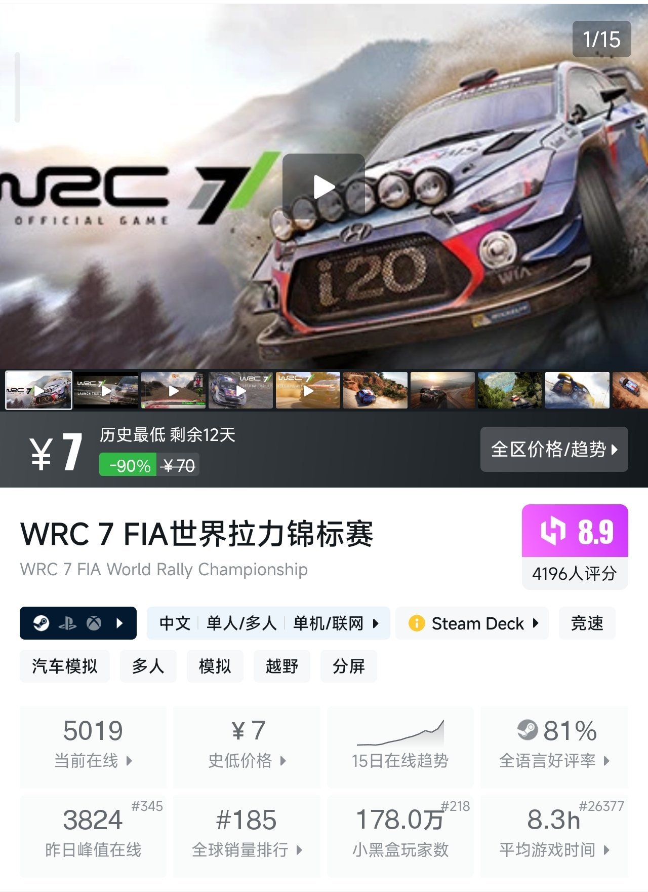 3、《WRC 7 FIA世界拉力锦标赛》