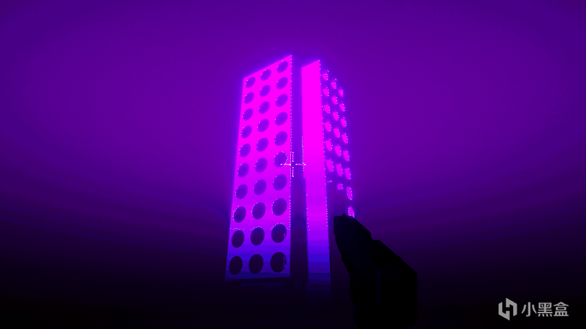 这是个线性关卡的设定,玩家需要在一排排圆形的光之间辗转腾挪,到达塔的顶点。终点的时候,塔,也许会跟现实里一样,被后面更大的BOSS,拆除毁灭。