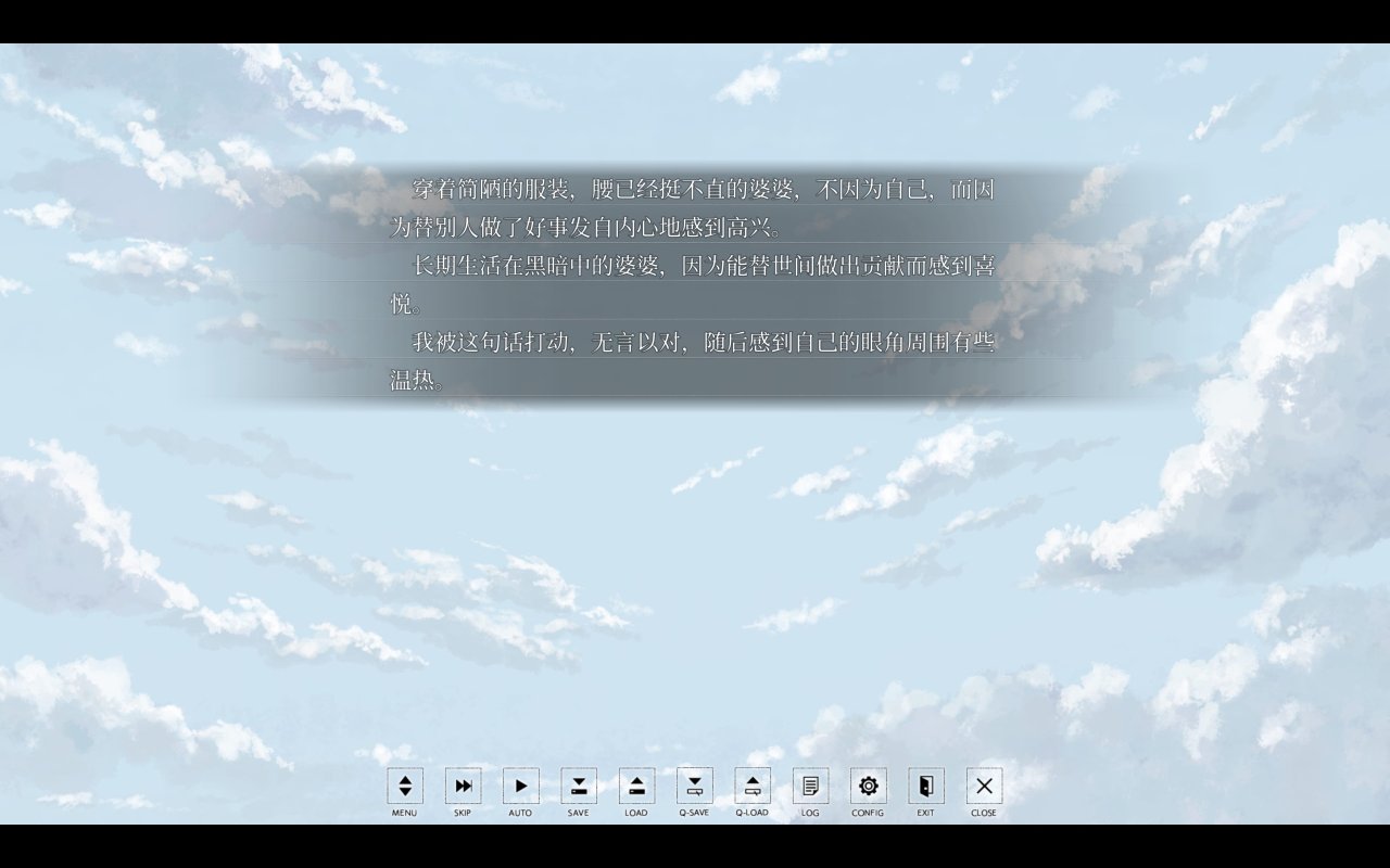 作为一部短篇视觉小说,本作的视听完成度相当高。CG虽不华丽,但数量充足,始终服务于叙事。音乐同样克制,不至于喧宾夺主。