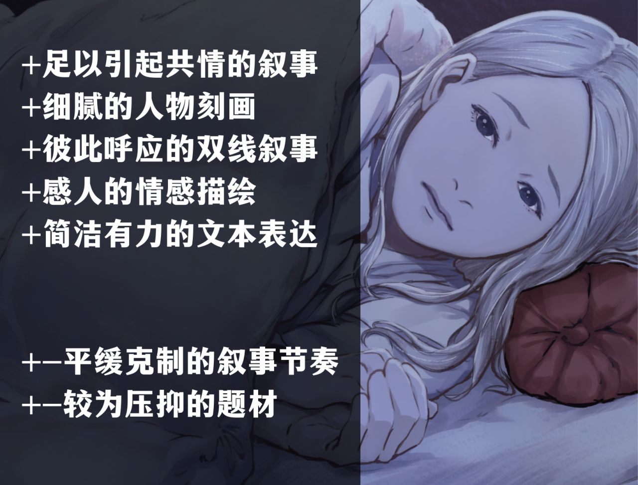 真正让我难受的,是它过分贴近现实的真情。设定确实是虚构的,但那些在文字之间流动的情感,却真实得让人无法回避。
