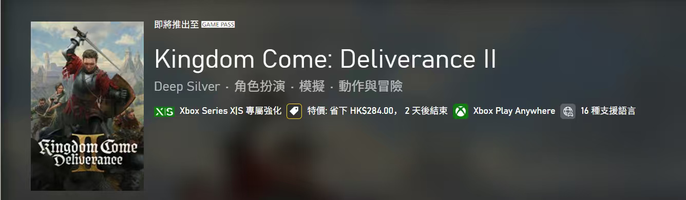 《天国:拯救2》现已加入XPA(Xbox跨平台游玩) 阵容。