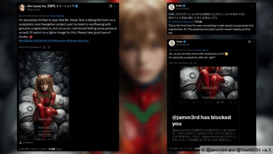 近日,一場圍繞AI生成藝術的爭議在遊戲圈炸開。起因是《劍星》總監金亨泰爲祝賀《尼爾》系列製作人橫尾太郎將執導《EVA》新項目,發佈了一張賀圖:畫中《EVA》的明日香站在一堆《尼爾》標誌性角色“埃米爾”的頭顱上。