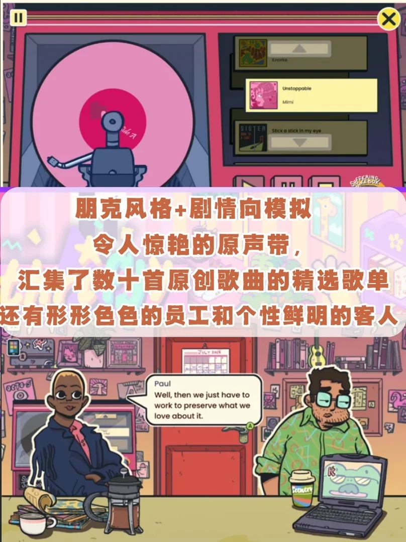 给客人推荐唱片、解锁客人身世剧情。