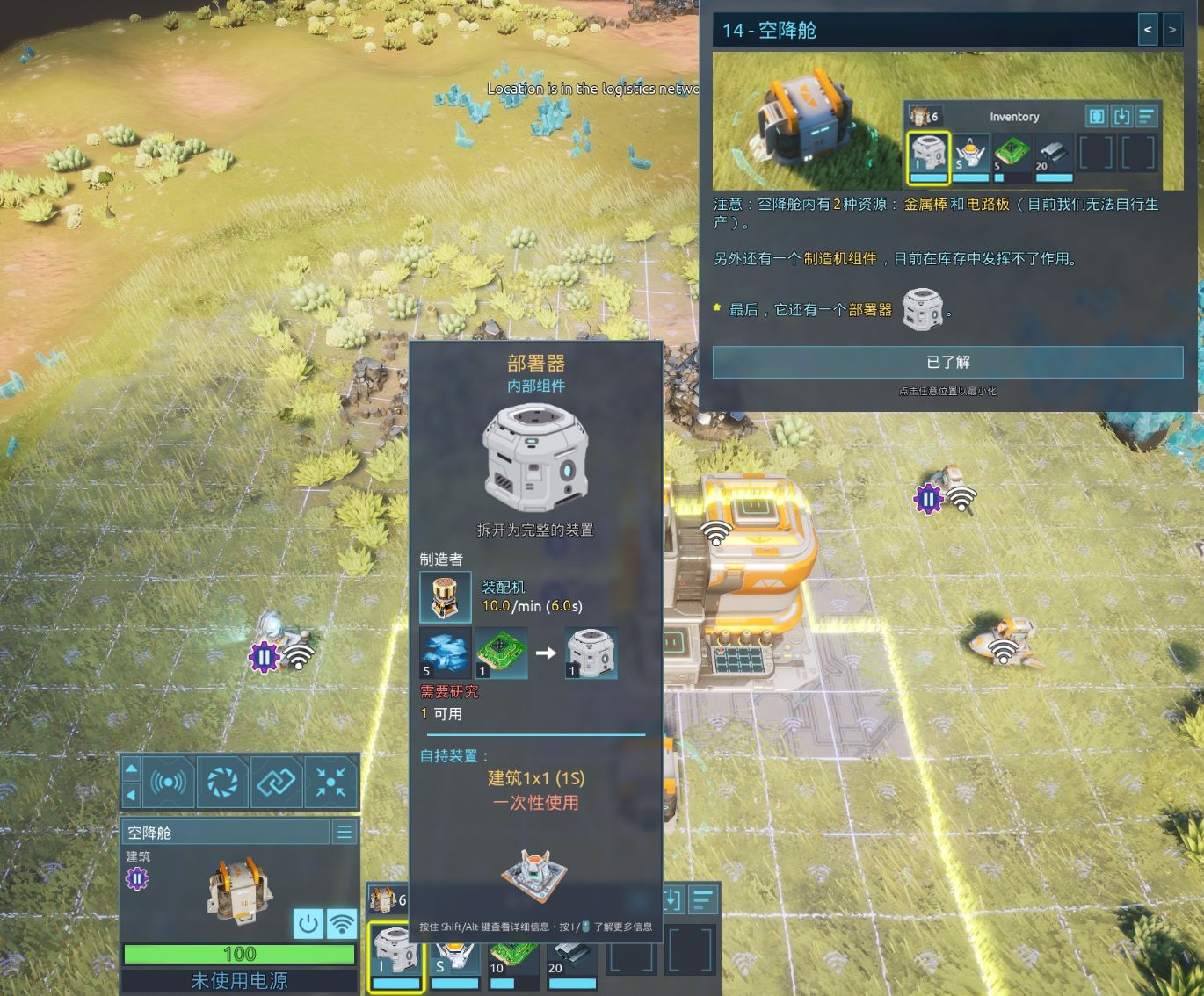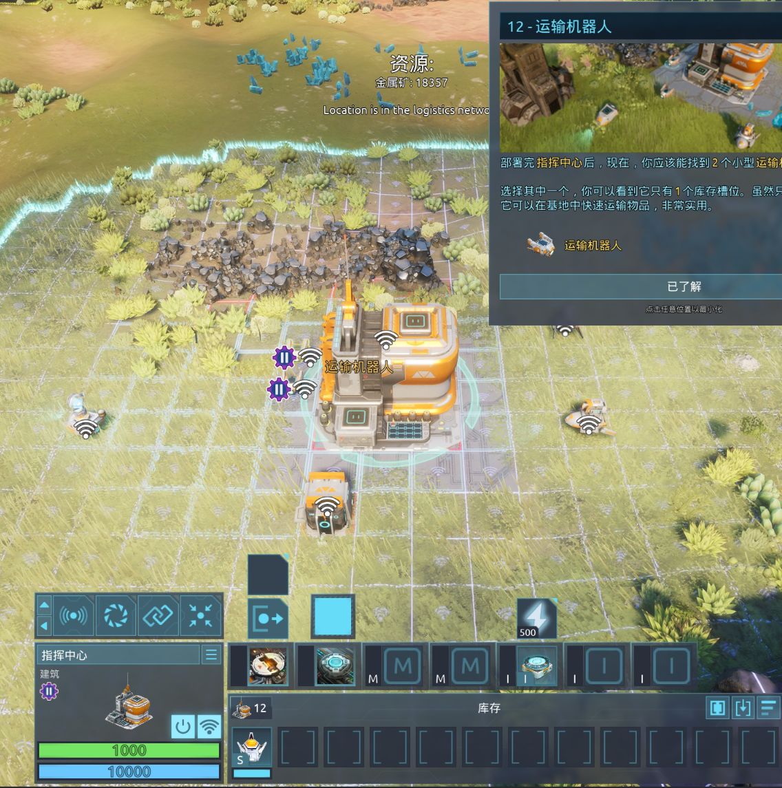 在部署了基地以后,我拥有了两个运输机器人。我需要用运输机器人运输物品。