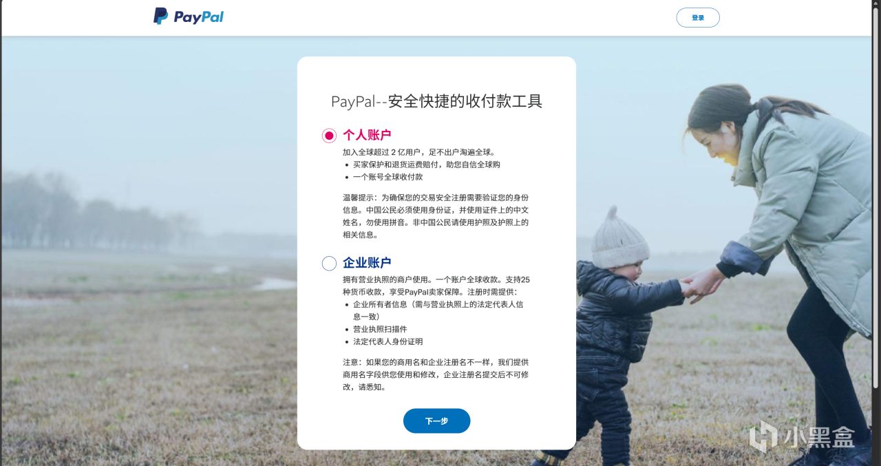 2.选择个人账户,点击下一步