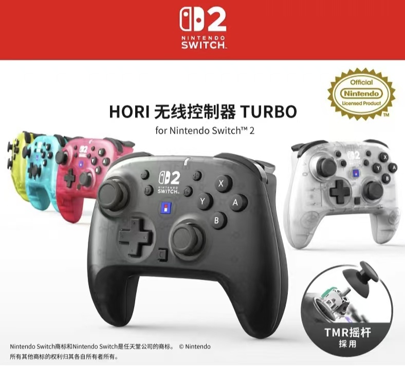 先别伤心,其实老任早就给了我们备用方案——ns2授权手柄。目前得到老任授权的厂商少之又少,看得出来老任在这方面还是非常苛刻的,而我们的HORI算得上是为数不多的其中一个厂商。他们家在最近恰好推出了一款ns2授权的无线控制器 turbo手柄。