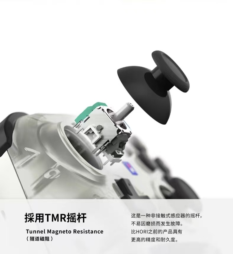 当然,太子爷自然得拿出太子爷的实力,这款手柄采用了TMR摇杆,这在诸多ns授权手柄当中算得上是先例了,这下技术党真得狂喜了。相较于HORI家此前的手柄,这款手柄的摇杆拥有更高的精度和耐久度,恰巧玩家们还可以在ns2上游玩诸如《马车》、《Apex》这种需要最强精操的游戏,这下真是降维打击了。